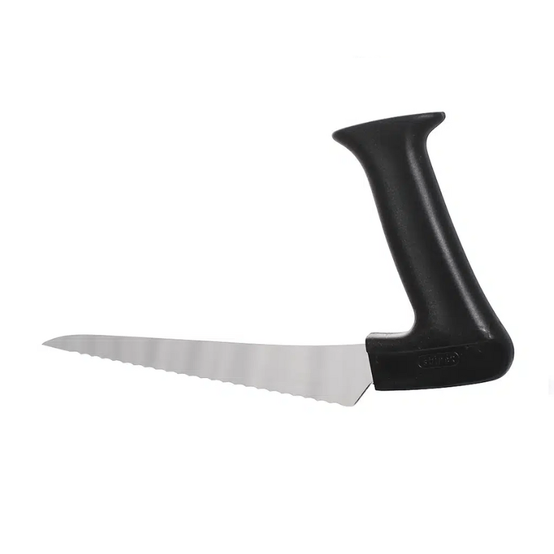Ergonomisk universalkniv med bølget blad fra Stirex. Perfekt til å skjære alt fra brød til grønnsaker.