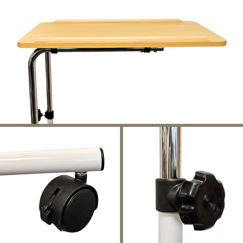 Dette praktiske nattbordet er designet for å passe perfekt rundt møbler som seng, stol eller rullestol. Det gir deg en fleksibel og komfortabel løsning, uansett hvor du ønsker å bruke det.