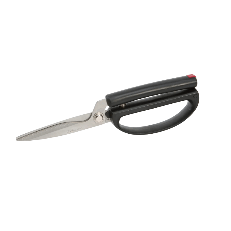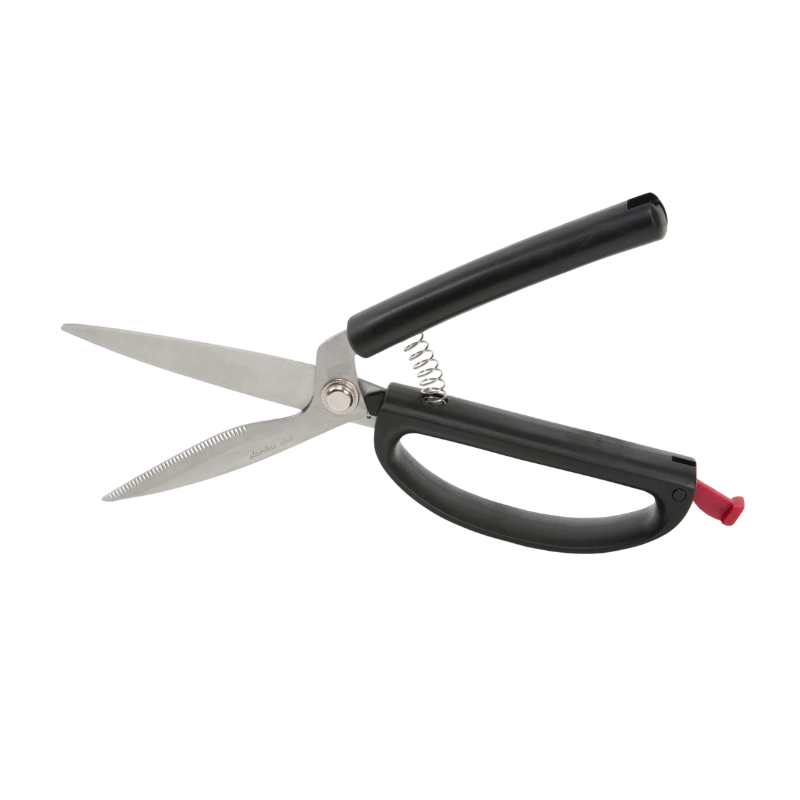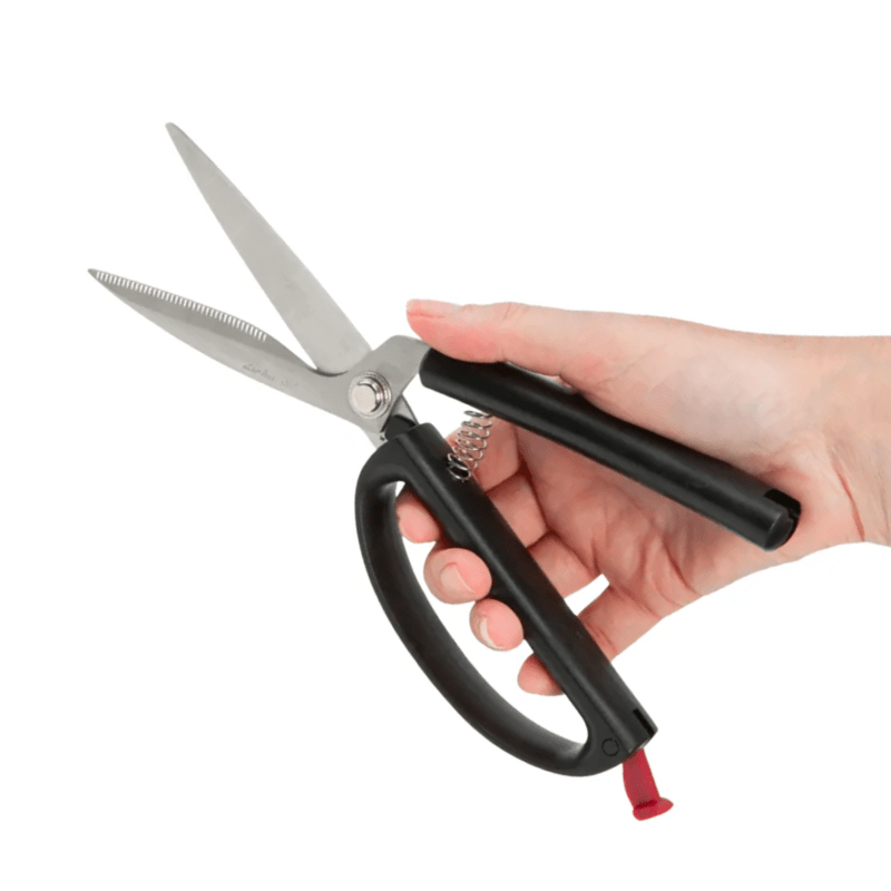 Kjøkkensaks med stort og komfortabelt grep. Saksen har en fjærfunksjon som gjør at den åpner av seg selv, noe som gjør det lett å klippe.