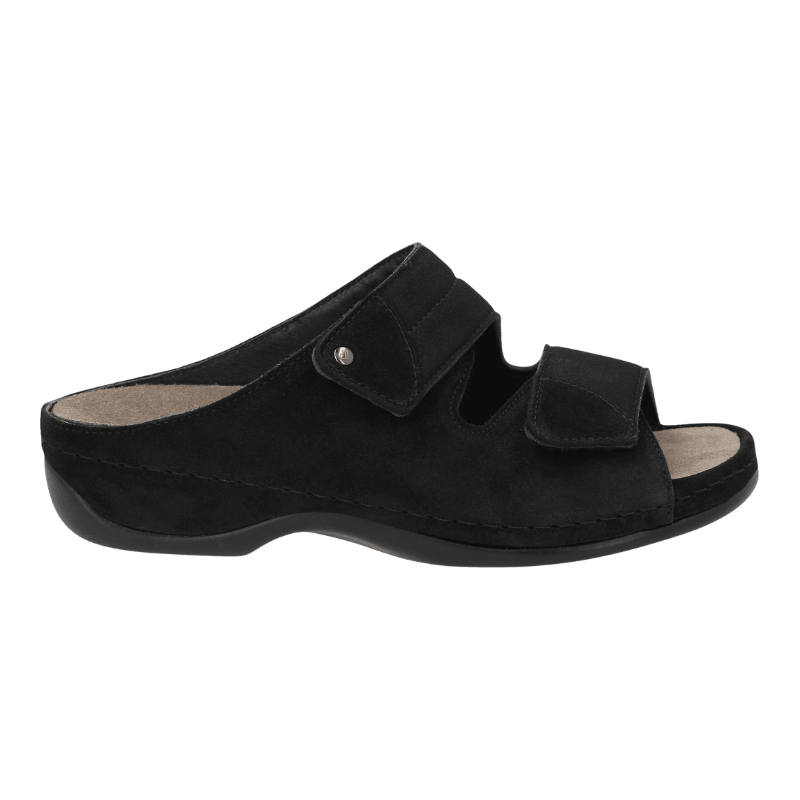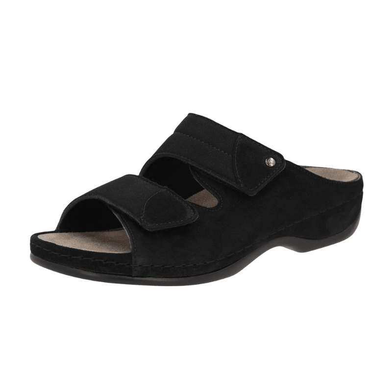 Komfortabel hjemmesko fra Berkemann i sort ruskind med stretch, der tilpasser sig foden og giver en blød og fleksibel pasform. Det elastiske design aflaster tryk og gør modellen særligt velegnet ved hallux valgus og følsomme fødder generelt.