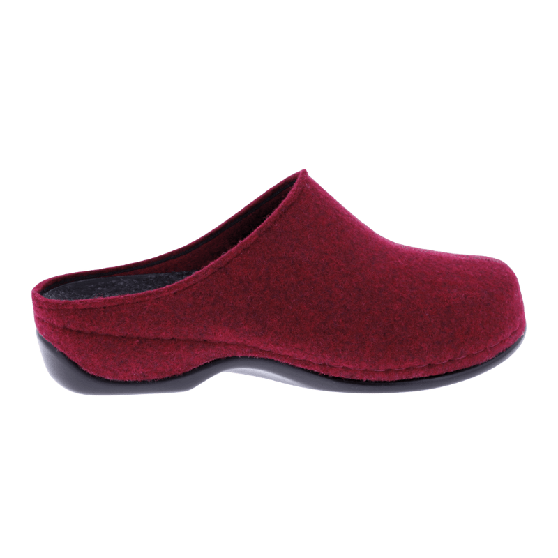Behagelig hjemmesko fra Berkemann i mørkerød filt, der giver varme og komfort på kolde dage. Det bløde filtmateriale former sig efter foden og sikrer en let og fleksibel pasform.