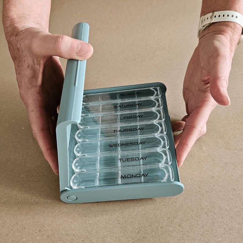 Når låget på pilleæsken er åbent, kan alle doseringsæskerne ses, hvilket giver et hurtigt overblik, og man kan nemt tjekke, om alle piller er taget som planlagt.