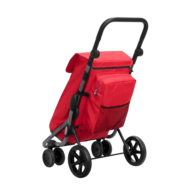 Go Plus er en stabil og eksklusiv indkøbsvogn med en ekstra stor taske på 53,5 liter samt et isoleret termorum på 10 liter, som holder dine varer friske hele vejen hjem. Vognen har fire hjul, hvoraf baghjulene er større, hvilket gør den yderst stabil – også på ujævnt underlag – og giver dig mulighed for at skubbe den foran dig som ekstra støtte.