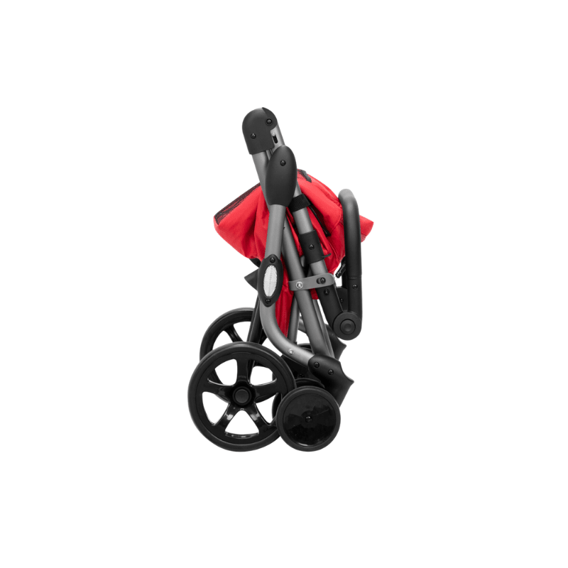 Vognen kan klappes sammen, så den fylder ganske lidt, og tasken kan nemt tages af stellet.