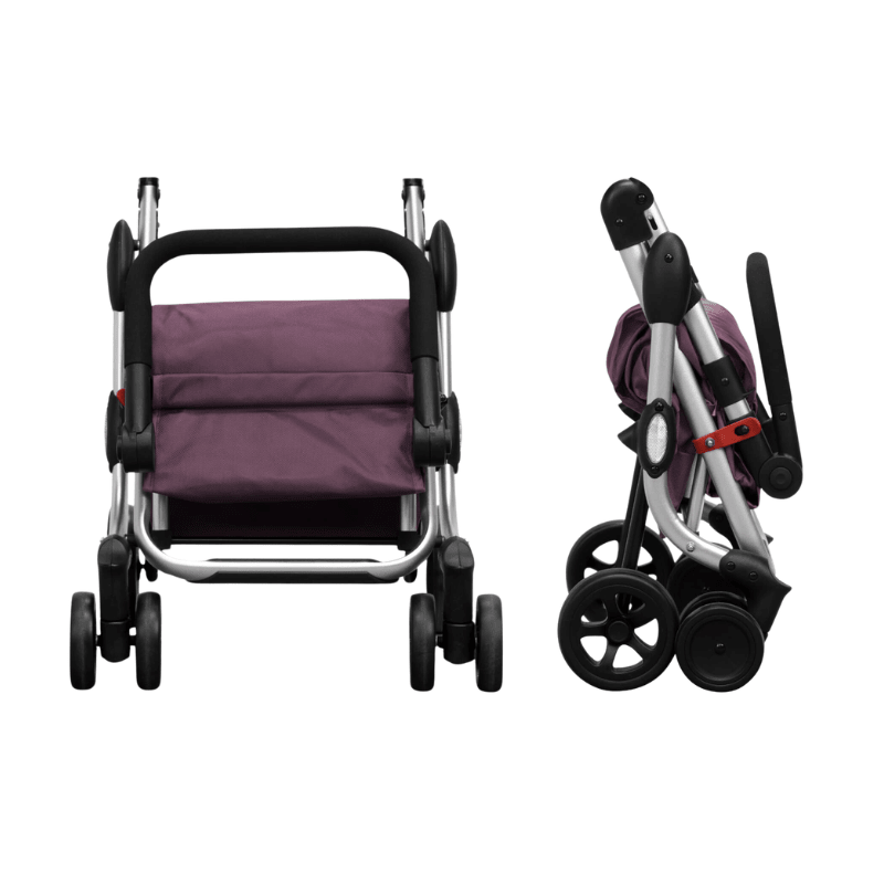 Indkøbsvognens håndtag er polstret med EVA-skum, og er justerbart i flere højder. Indkøbsvognen kan nemt klappes sammen og låses med en automatisk sikkerhedslås, når den ikke er i brug - eller når du skal transportere den.