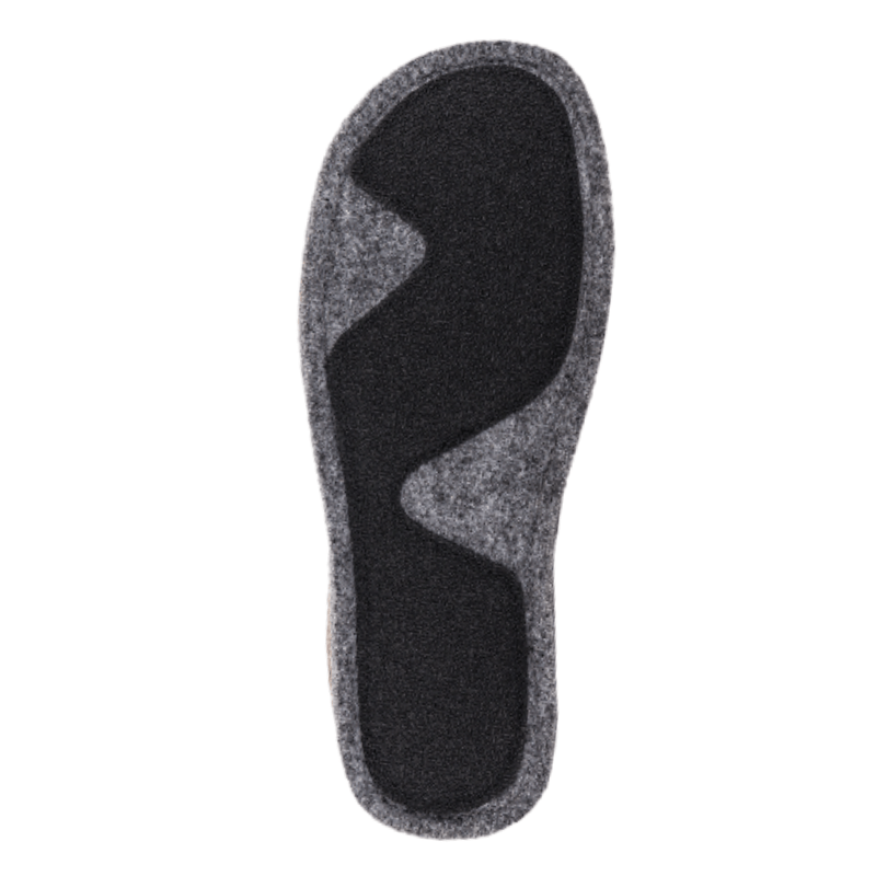 Den lette ydersål i filt giver en behagelig og lydløs gang og indeholder en skridhæmmende gummiindsats, som sørger for stabilitet og sikkerhed.