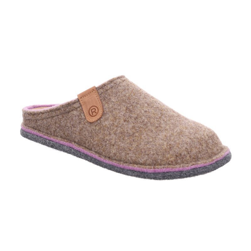 Lun og behagelig "no noise" damehjemmesko fra Rohde i flot beige nuance. Hjemmeskoen er lavet i blødt, åndbart filt, der føles rart mod foden og hjælper med at holde en jævn temperatur. Den udtagelige indersål er belagt med ruskind, som gør den både blød og slidstærk.