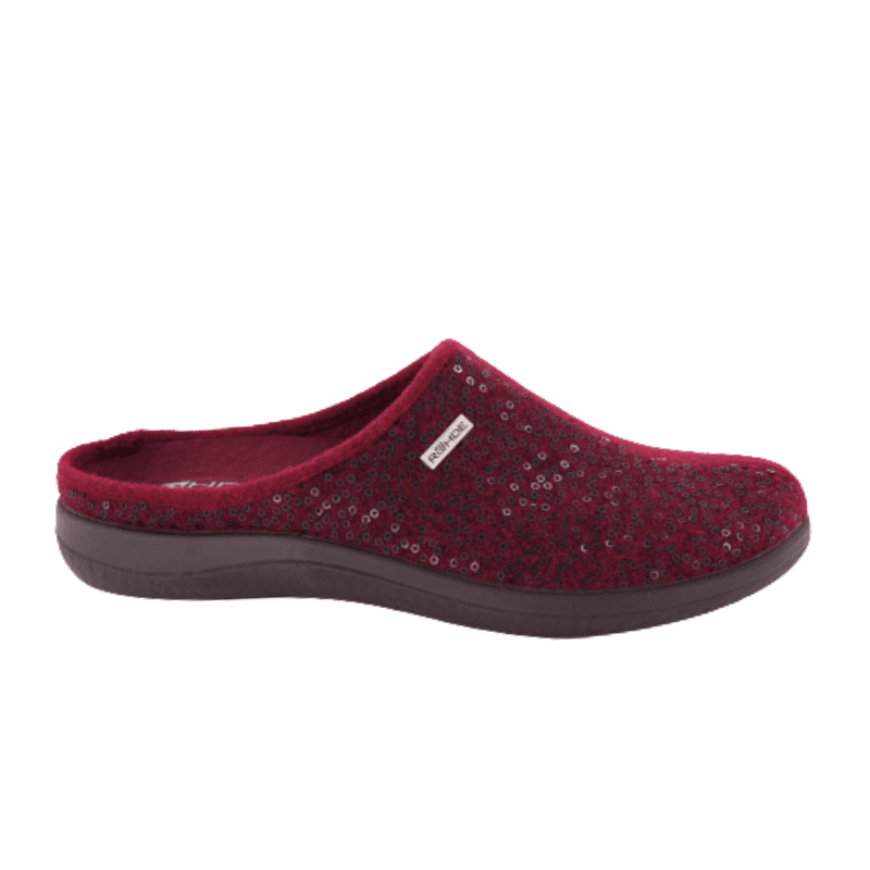 Let, lækker og smart damehjemmesko uden hælkappe i blødt uldfilt og pynt med fine små pailletter.