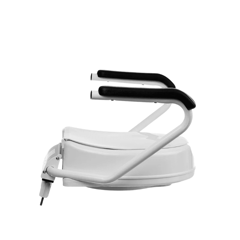 Toiletforhøjeren er med armlæn og låg, og forhøjer med 10 cm. Armlænene kan klappes op og ned, uafhængigt af hinanden.