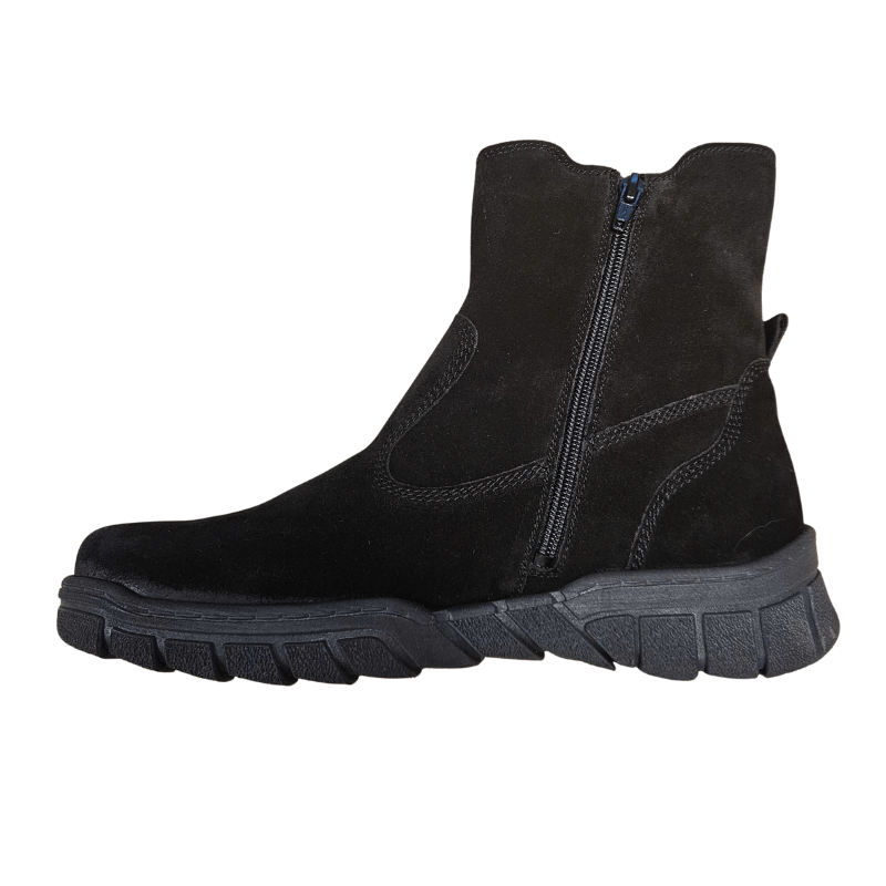 Elegant sort vinterstøvle fra Waldläufer i blødt ruskind med en yderst blød og varm foring, der sikrer super god komfort – selv på kolde dage. Støvlen er udstyret med en lynlås på indersiden, som gør den nem at få af og på.