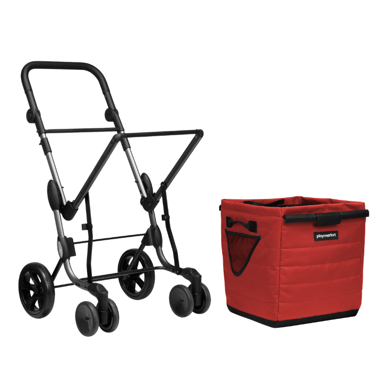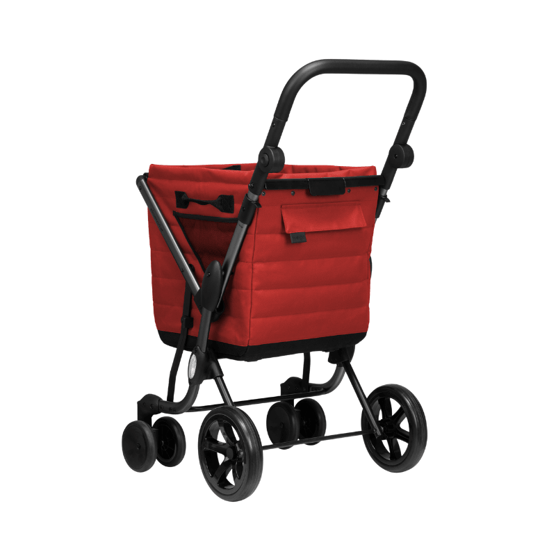 Indkøbsvognen har en stor rummelig tekstilkurv, som er produceret i et stærkt vandtæt materiale. På denne nye model er det blevet nemmere at (af)montere tasken på stellet, og inderposen kan tages af og vaskes.