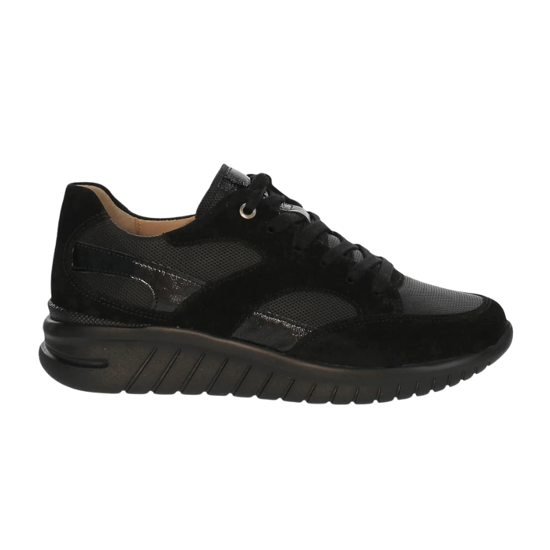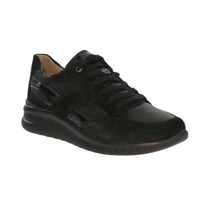 Komfortabel snøresko i svart semsket skinn