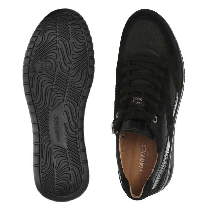 Hartjes damesko i svart semsket skinn med både lisser og glidelås, som gjør det enkelt å tilpasse passformen og ta skoen av og på.