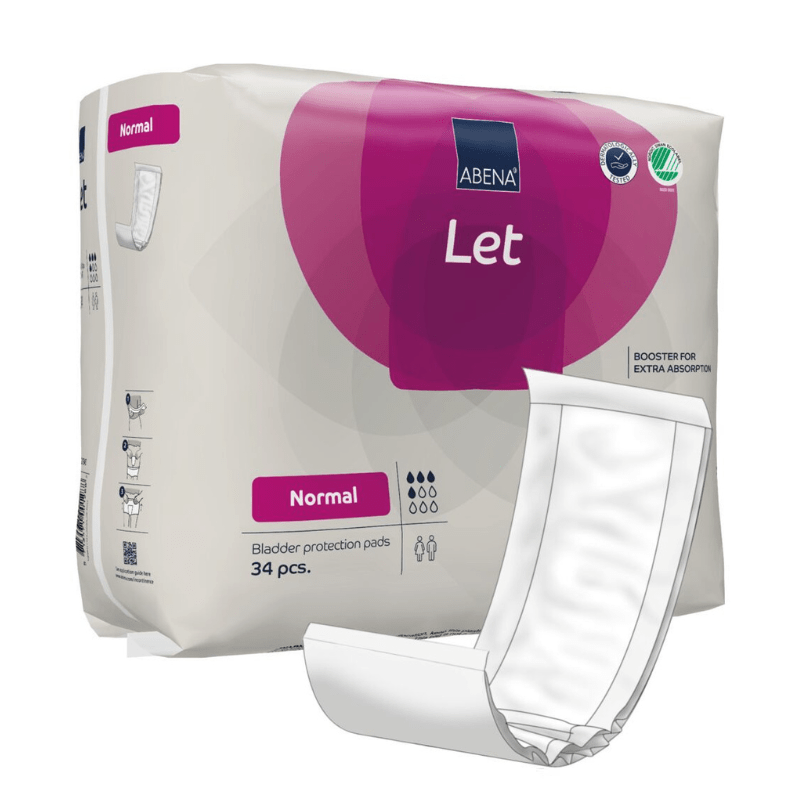 Abena Let er et tynt, rektangulært bind tilgjengelig i 3 ulike størrelser. Passer for lett til moderat inkontinens.