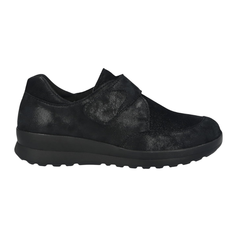 Klassisk og anatomisk formet damesko i svart lær med elastiske paneler som sikrer super god fleksibilitet og komfort uten trykk.