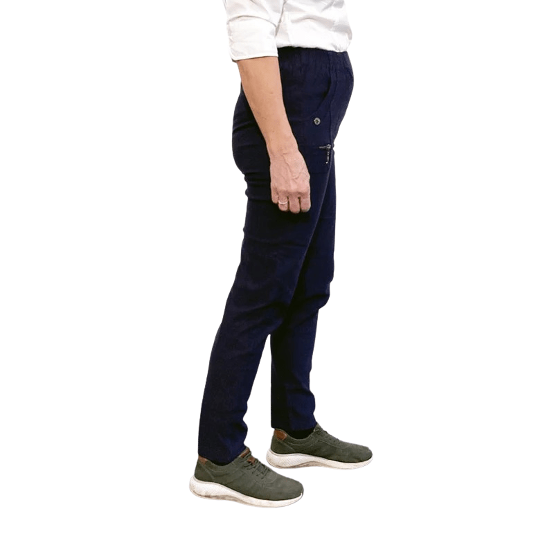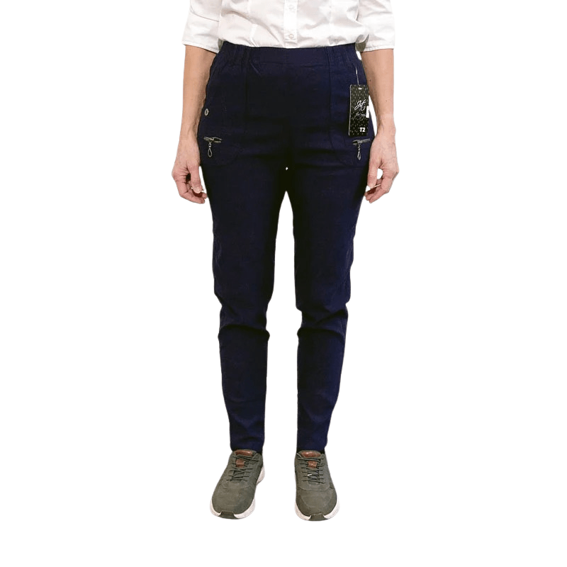 Deilige og enkle bukser i en vakker og klassisk marineblå farge med en fastsydd elastisk kant fra Vanting Collection.