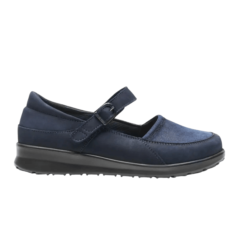 Skoen er laget uten innvendige sømmer og har en stabil hælkappe, noe som gjør den spesielt egnet for personer med gikt, diabetes eller sensitive føtter.