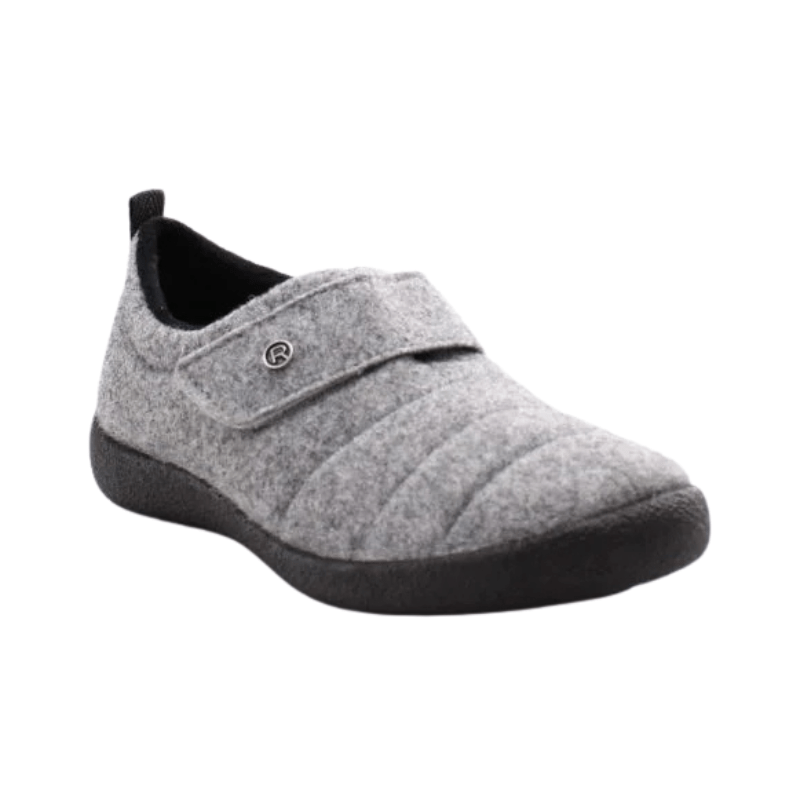 Deilig ortopedisk tøffel med overdel i mykt filt av høy kvalitet, som omslutter foten med varme og komfort. Den uttakbare innersålen gir god støtte og kan erstattes med egne spesialinnlegg etter behov.