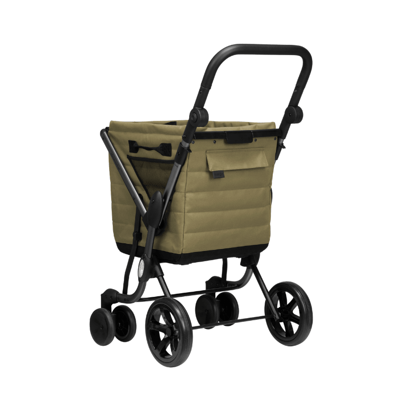 Handlekurven har en stor romslig tekstilkurv laget av et sterkt vanntett materiale. På denne nye modellen er det blitt enklere å montere og demontere vesken fra rammen, og innerposen kan tas av og vaskes.